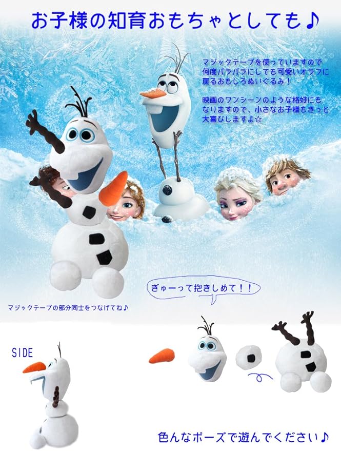 Amazon Disney ディズニー アナと雪の女王 組み立て オラフ スヴェン ぬいぐるみ セット 全長37cm 47cm 雪だるま 取り外し可能 トナカイ 白 青 橙 黒 茶 並行輸入品 ぬいぐるみ おもちゃ